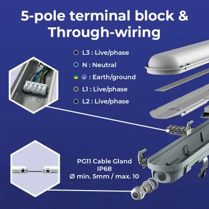 Noxion LED Waterdichte Montagebalk Poseidon V3.0 65W 8450/9100lm - 830-865 CCT | 150cm - Doorvoerbedrading (5x2.5mm2) - Bewegings- En Lichtsensor
