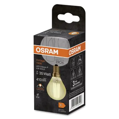 Osram Vintage 1906 LED E14 Kogel Filament Goud 4W 420lm - 825 Zeer Warm Wit | Vervangt 35W